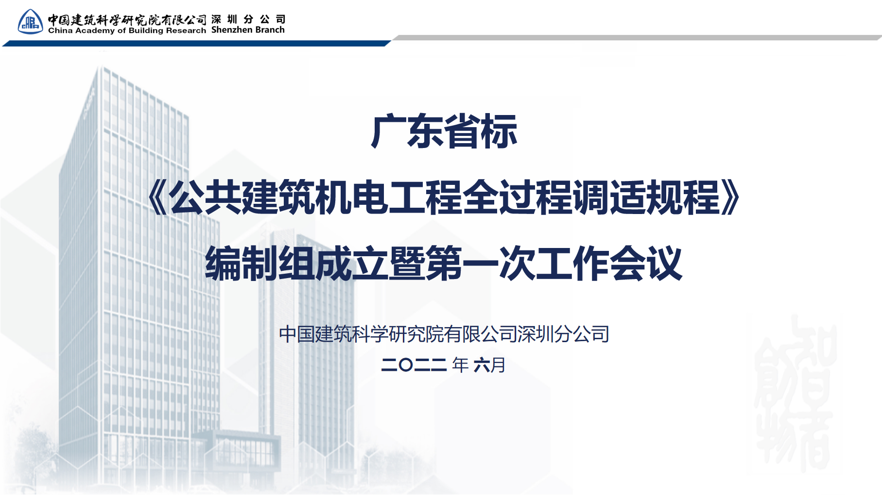 廣東省工程建設(shè)標(biāo)準(zhǔn)《公共建筑機(jī)電工程全過程調(diào)適規(guī)程》編制組成立暨第一次工作會議順利召開