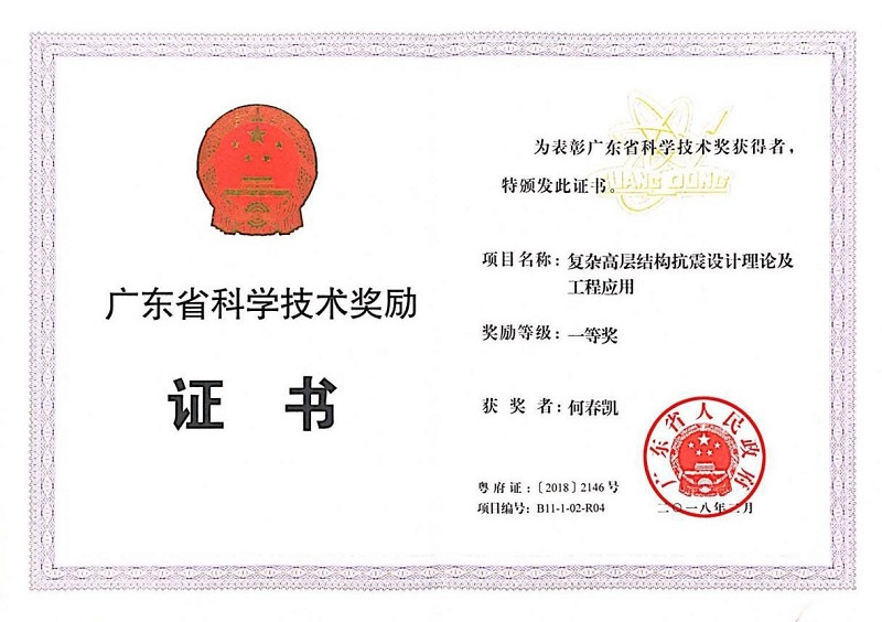 2018年 3月11日,廣東省人民政府發(fā)布了關(guān)于2017年度廣東省科學(xué)技術(shù)獎(jiǎng)的通報(bào)。根據(jù)《廣東省科學(xué)技術(shù)獎(jiǎng)勵(lì)辦法》,經(jīng)省科學(xué)技術(shù)獎(jiǎng)評(píng)審委員會(huì)評(píng)審、省科技廳審核、省人民政府批準(zhǔn)授予,深圳中建院建筑科技有限公司(下稱深圳中建院)、中建院總經(jīng)理何春凱榮獲2017年度廣東省科學(xué)技術(shù)獎(jiǎng)一等獎(jiǎng)。獲獎(jiǎng)項(xiàng)目《復(fù)雜高層結(jié)構(gòu)抗震設(shè)計(jì)理論及工程應(yīng)用》,是深圳中建院建筑科技有限公司和哈爾濱工業(yè)大學(xué)合作完成的課題。
