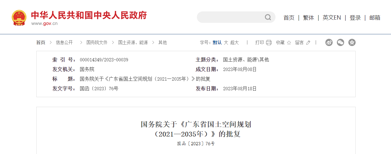 國(guó)務(wù)院關(guān)于《廣東省國(guó)土空間規(guī)劃(2021—2035年)》的批復(fù)