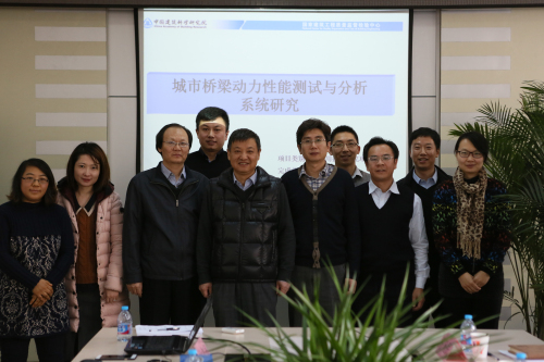 12月10日,由院檢測中心承擔的住建部科技計劃項目、院自籌應用研究課題“城市橋梁動力性能測試與分析系統(tǒng)研究”在北京順利通過驗收。本次驗收委員會由北京市市政工程研究院研究員鐘銘、中交公路規(guī)劃設計院有限公司檢測中心教授級高工張新越、交通運輸部公路科學研究院研究員羅翥、中冶建筑研究總院有限公司檢測中心教授級高工楊勇新、院檢測中心研究員張仁瑜、中交四公局(北京)公路試驗檢測科技有限公司高工卜凡民、北京市建設工程質量第三檢測所有限責任公司教授級高工田春艷組成,鐘銘研究員擔任主任委員。院檢測中心張仁瑜副主任、課題驗收專家及課題組成員等共11人參加了會議。會上,驗收專家審核了驗收資料,聽取了課題組的匯報,經(jīng)質詢和討論,認為該項目對城市橋梁結構在環(huán)境激勵下不同模態(tài)分析算法進行了比較研究,并對不同的算法進行了優(yōu)化,經(jīng)驗證改進后的算法可靠,適用于橋梁結構模態(tài)分析。項目開發(fā)的工程結構模態(tài)分析軟件(MAES),經(jīng)有限元比較和實橋測試結果驗證,具有較高的精度和計算效率。軟件具有完全自主知識產權,填補了城市橋梁結構模態(tài)分析軟件方面的空白。驗收專家認為課題完成了研究任務,達到了預期目標,研究成果達到國內領先水平,一致同意通過驗收。